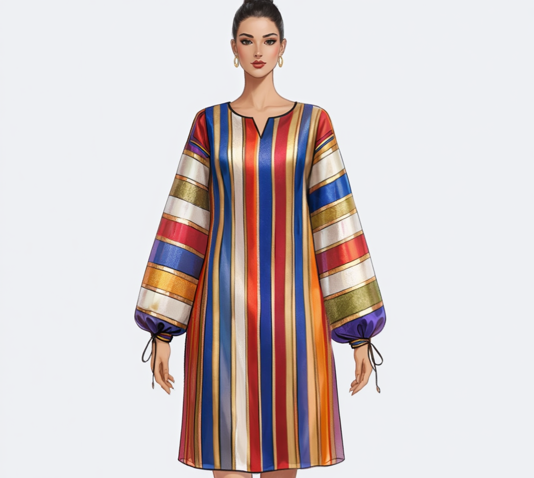 A softly structured A-line dress with subtle waist definition and fluid sleeves. Vertical and horizontal line placements create visual balance, while functional side pockets add ease to this refined everyday piece.